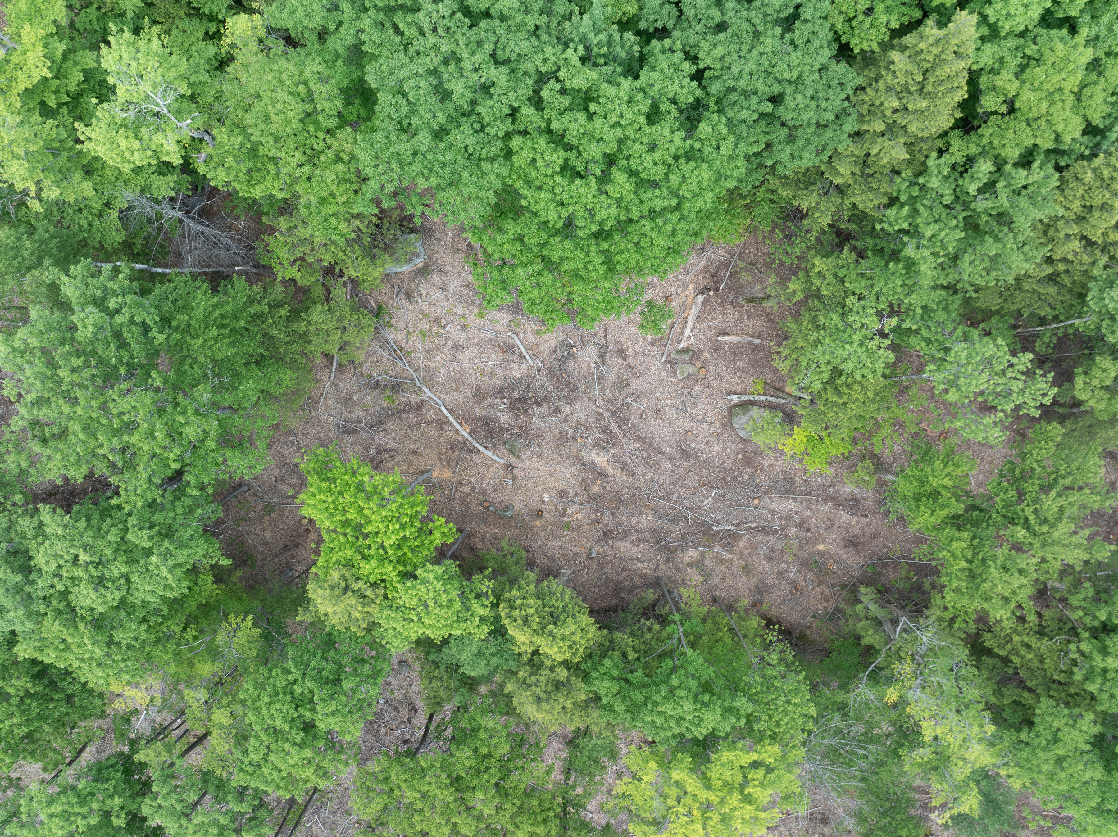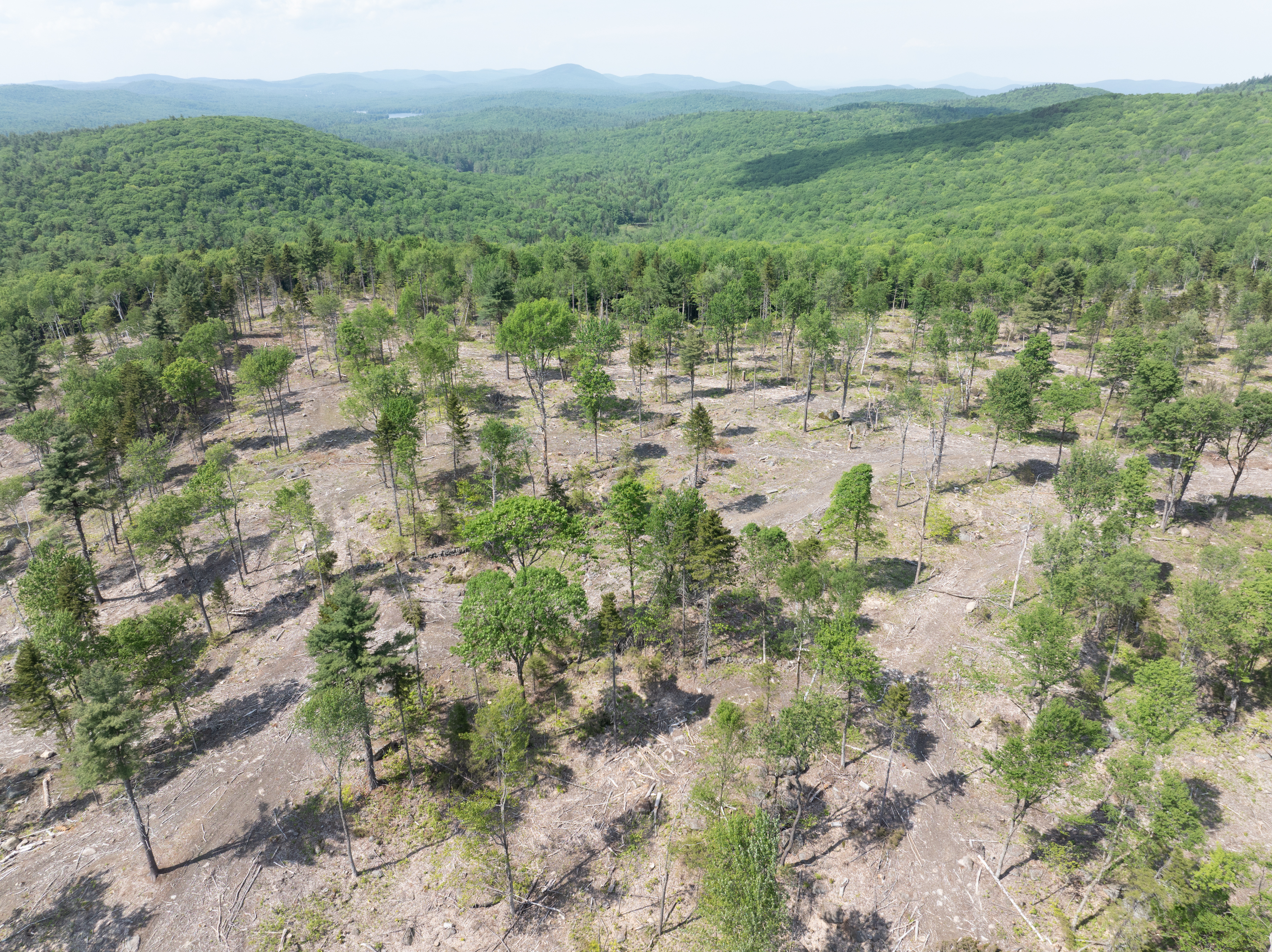 Following the harvest, recent aerial imagery was used to map the harvest area and acres regenerated. Our goal was to have 20-50% of the stand acreage in regeneration cuts. 65 acres of regeneration were created during this harvest, roughly 45% of the total area of the stand. In these acres, the forest is being recolonized by a wide array of species suitable for our future climate. 36% of the stand was thinned, promoting vigor of the remaining trees, and 19% was left untouched.